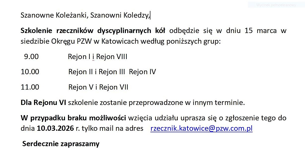 Rzecznik Dyscyplinarny Okręg PZW w Katowicach