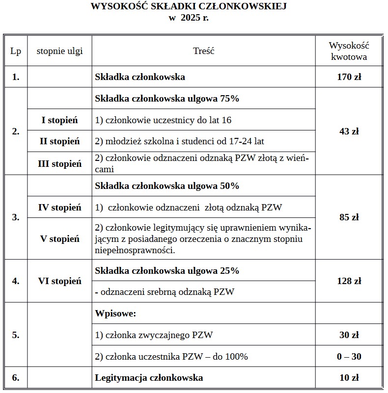 Wysokość składek PZW: członkowskiej i okręgowej na 2025
